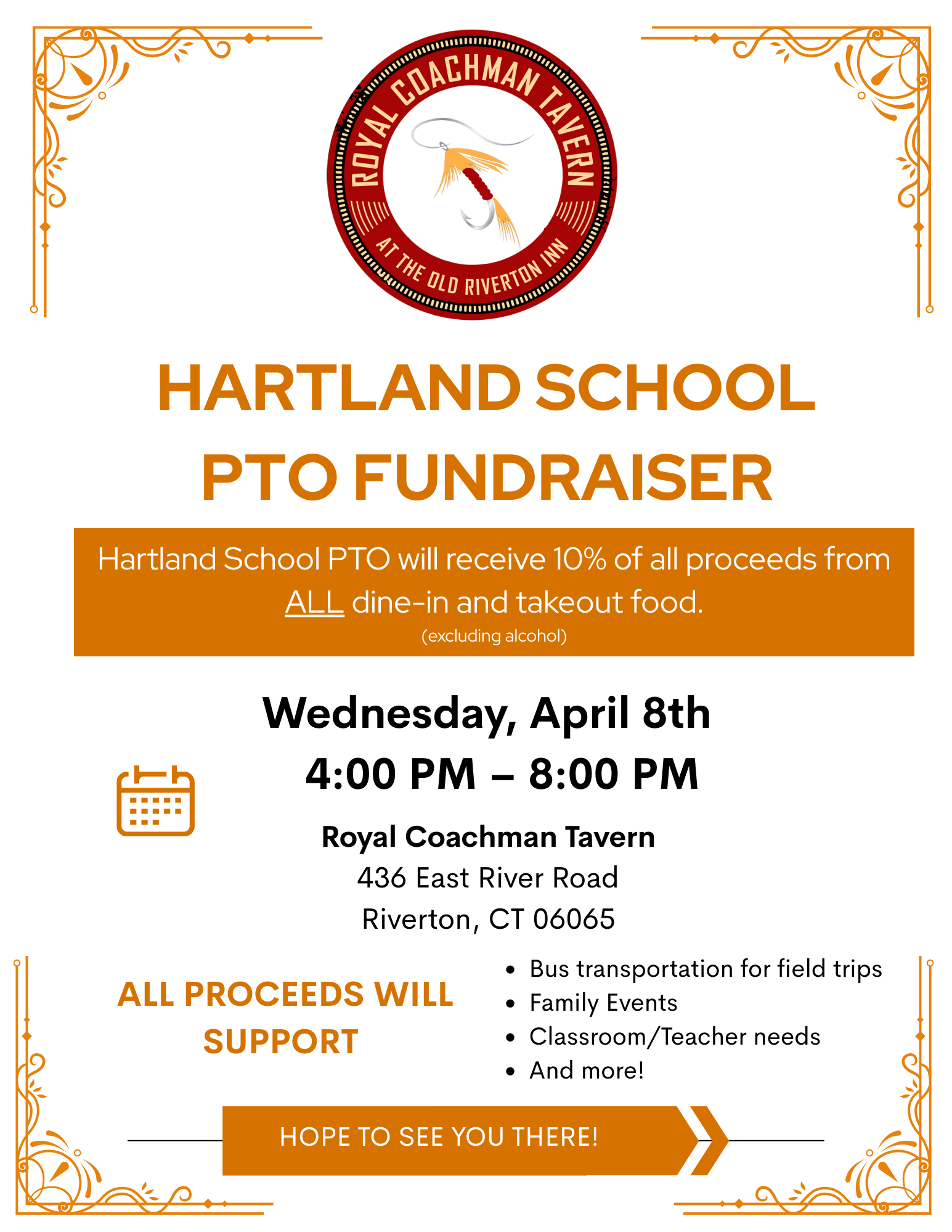 Please join us for a family night at Royal Coachman. All proceeds will go the the Hartland School PTO.
